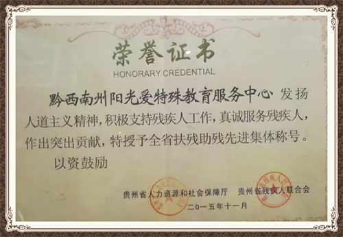 10月,被貴州省社會(huì)保障資源部、貴州省殘聯(lián)評(píng)選為“助殘扶殘先進(jìn)集體”。