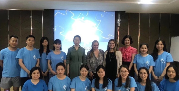 本中心定期給老師和家長(zhǎng)們提供學(xué)習(xí)和交流的平臺(tái),經(jīng)常開展各種培訓(xùn)。2017年我們對(duì)中心老師進(jìn)行了多次線下、線上內(nèi)訓(xùn)及外訓(xùn),通過這些培訓(xùn),老師們的教學(xué)技能得到了大幅提升。2017年3月來自于加拿大的專家Esther Lam老師來中心進(jìn)行教學(xué)指導(dǎo);2017年4月南京特教學(xué)院康復(fù)科學(xué)系的許海燕講師來給家長(zhǎng)、老師們做指導(dǎo);2017年5月臺(tái)灣職能治療師邵玉珊教授給老師們開展了感統(tǒng)講座;2017年7月,老師們參加了第四期全國(guó)孤獨(dú)癥兒童康復(fù)人員的培訓(xùn);2017年12月南方貝貝全體老師一起參加學(xué)習(xí)了智然老師《萬物生長(zhǎng)靠太陽(yáng)》的高能量心理學(xué)報(bào)告會(huì)。2018年2月,邀請(qǐng)?zhí)颇镜美蠋焷碡愗愡M(jìn)行口肌培訓(xùn);2018年3月,邀請(qǐng)魔法媽媽周玲玲老師和她的女兒Grace來南京進(jìn)行培訓(xùn);2018年6月,邀請(qǐng)美國(guó)特教專家來南京進(jìn)行技術(shù)指導(dǎo);2018年8月,邀請(qǐng)北京殊心團(tuán)隊(duì)老師來南京進(jìn)行PRT一級(jí)培訓(xùn),等等。在日常生活中,還會(huì)針對(duì)家長(zhǎng)進(jìn)行培訓(xùn)的微信群講座,力爭(zhēng)讓家長(zhǎng)的教育理念和中心同步,以便學(xué)員取得更快進(jìn)步;我們中心的老師們將學(xué)到的知識(shí)技能知行合一,運(yùn)用于平時(shí)的教學(xué)和康復(fù)訓(xùn)練中,目前我們中心,大部分孩子經(jīng)過康復(fù)訓(xùn)練能夠進(jìn)入正常幼兒園或小學(xué)就讀。
